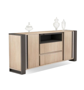 Bahiut vajillero 180 x 85 x 43 cm, detalles en vidrio micrograbado, puerto usb y correderas metalicas